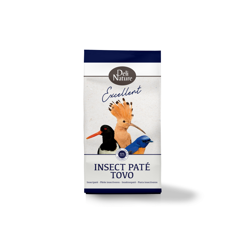 Deli Nature INSECTPATE TOVO is een volledig voer voor insectenetende vogels zoals blauwborstjes, nachtegalen, kwikstaarten,…. en waadvogels (kluut, scholekster, plevier,…). Het hoge aandeel en de grote variatie aan insecten (bv. gedroogde meelwormen, krekels, zoetwatergarnalen, daphnia,…) maken deze voeding uniek. Insectpate TOVO is een 100% gebruiksklaar insectenvoer. Bovendien is het een ideaal aanvullend voer voor alle vogelsoorten die extra dierlijk eiwit vragen in de voorbereiding van en tijdens de kweek zoals Europese vogels, tropische vogels, parkieten, papegaaien en vruchtenetende vogels. De extra toevoeging van organische zuren en oregano zorgen voor een optimale werking van het verteringssysteem.